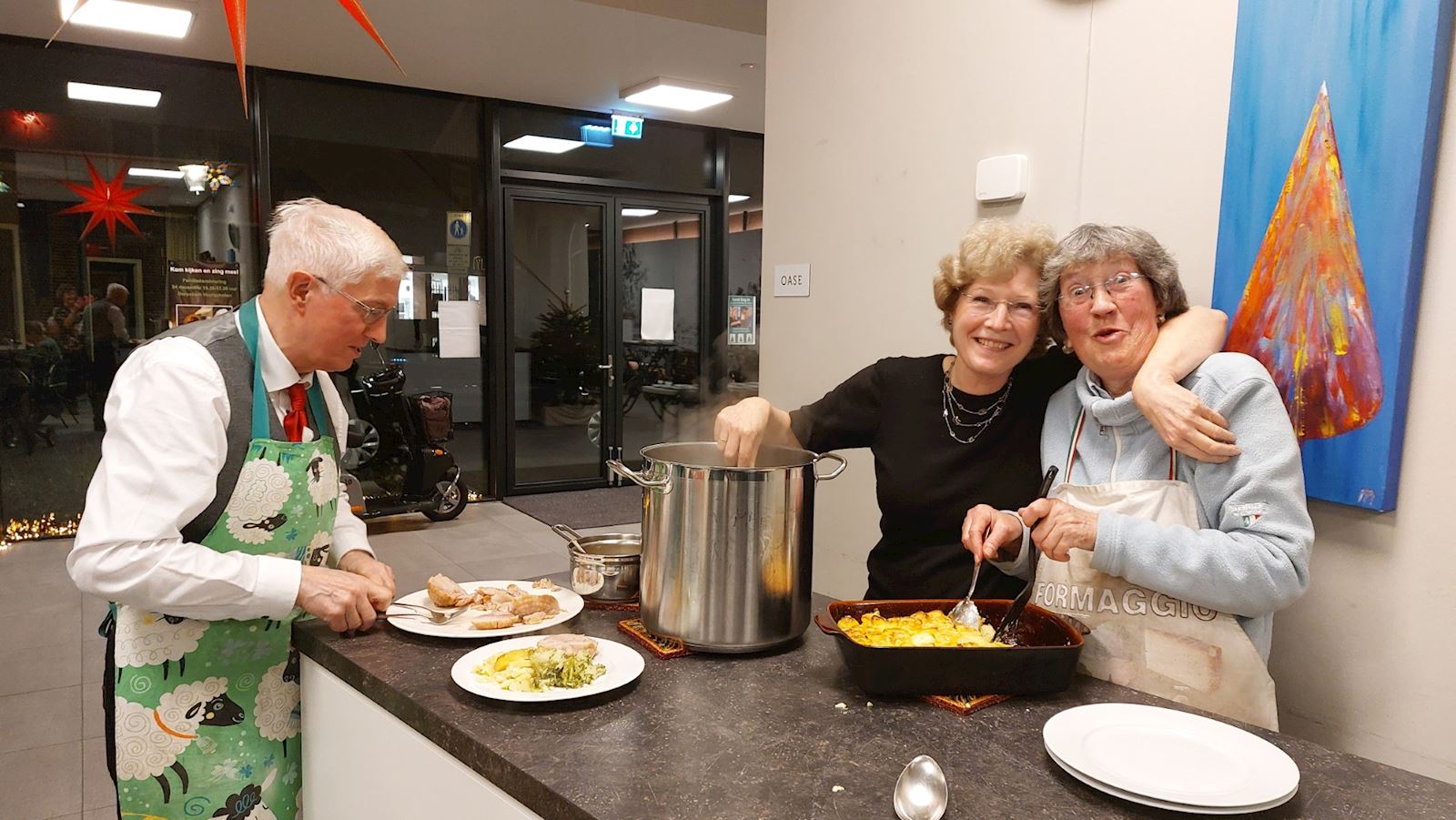Het menu was: rode linzensoep als voorgerecht, broccoli, aardappelgratin en kipdijrollade met een heerlijke saus als hoofdgerecht en een eigengemaakt roomsoesje met twee soorten ijs en slagroom als dessert, en dat alles voor € 3,50. Zo’n maaltijd komt niet zomaar op tafel. Ineke en Hans waren de dag tevoren al begonnen met voorbereidingen. Op de dag zelf kregen ze hulp van Erna de Boer, Marijke de Boks en Léon Cornelissen; Nel Roelofs zorgde voor koffie en thee en Annie van Ispelen hielp mee met de afwas. De gasten waren zeer tevreden over het lekkere eten en de fijne sfeer in het eetcafé. Dat bleek uit de extra bijdragen voor de pot van het eetcafé: van kleine bijdragen tot en met een zeer grote bijdrage van € 50,--. Ook kregen wij als team van het eetcafé kaarten met lovende woorden. De gasten van het Eetcafé verrasten ons. We waren stil van de grote dankbaarheid die de gasten lieten blijken. Wij als team van het Eetcafé willen ook in 2026 onze uiterste best doen voor onze gasten. Overigens, wil je helpen bij het Eetcafé, je bent van harte welkom. Namens het team van het eetcafé, Léon Cornelissen ![]() ![]() ![]() | ||